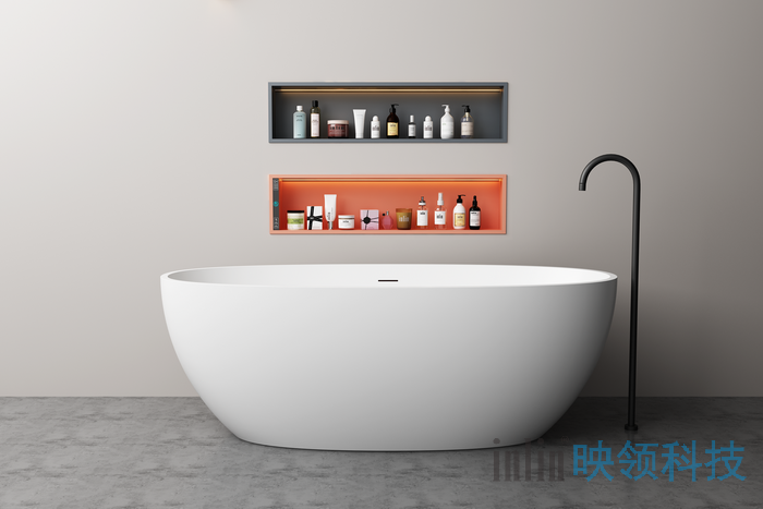 壁龛简介:我们在珠宝首饰店里会看到贵重物品都是放在壁龛内展示的,装有映领彩色莫兰迪色系壁龛的场景空间,会使收纳置物空间翻倍增加,而且瞬间变得梦幻般的童话世界、颜色淡雅温和、彩色而不腻、艺术奢华、精致智能、科技感十足。映领智能壁龛装有映领自主研发设计的智能模块、无需联网即可声控的声控模块控制模块(支持普通话、粤语高灵敏度控制)、触摸开关控制模块,照明灯饰,支持多个产品互连一键控制、一语音控制;伸缩挂巾杆、12V低电压电源;具有扩大室内空间的功能,极致扩大空间的利用率,墙面视觉得以延伸。并且装饰效果非常明显,现代家居已经不限使用于浴室、卧室、玄关、背景墙等任何场景空间;