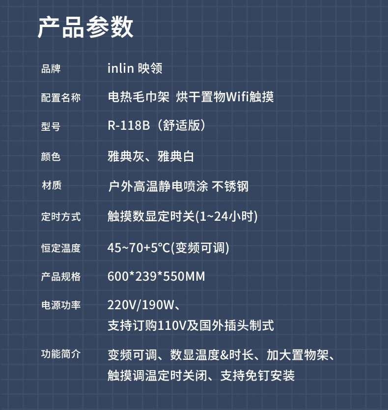 (还有其它电热毛巾架功能配置版本,敬请联系!)