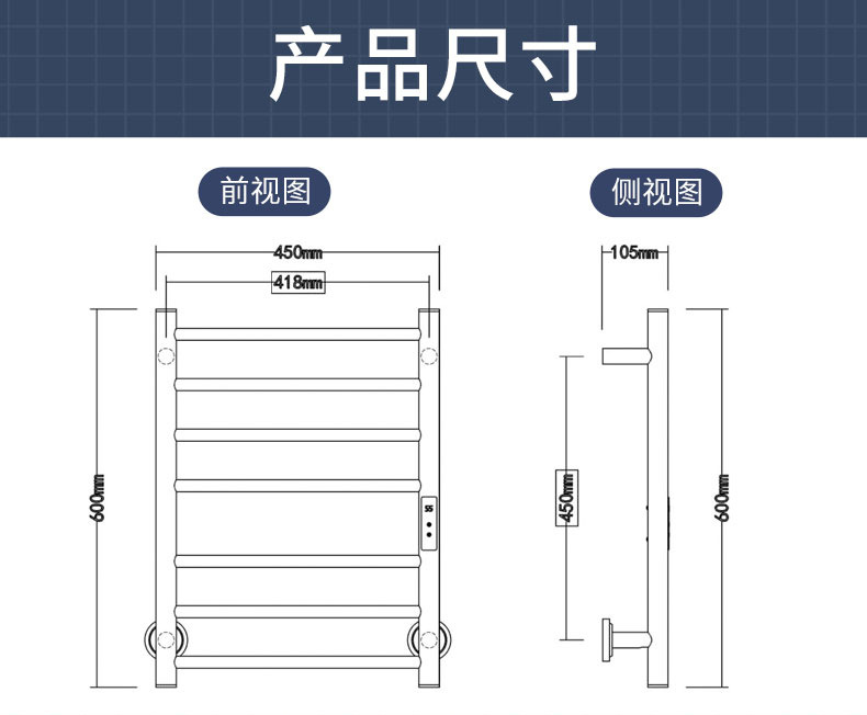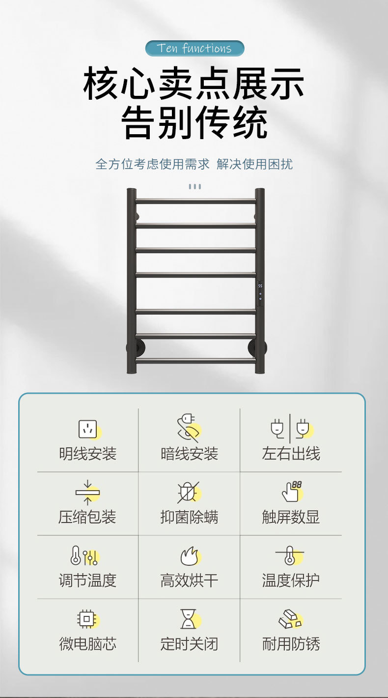 产品名称:电热毛巾架|不锈钢电热毛巾架|毛巾烘干架|工程跨境出口电热毛巾架