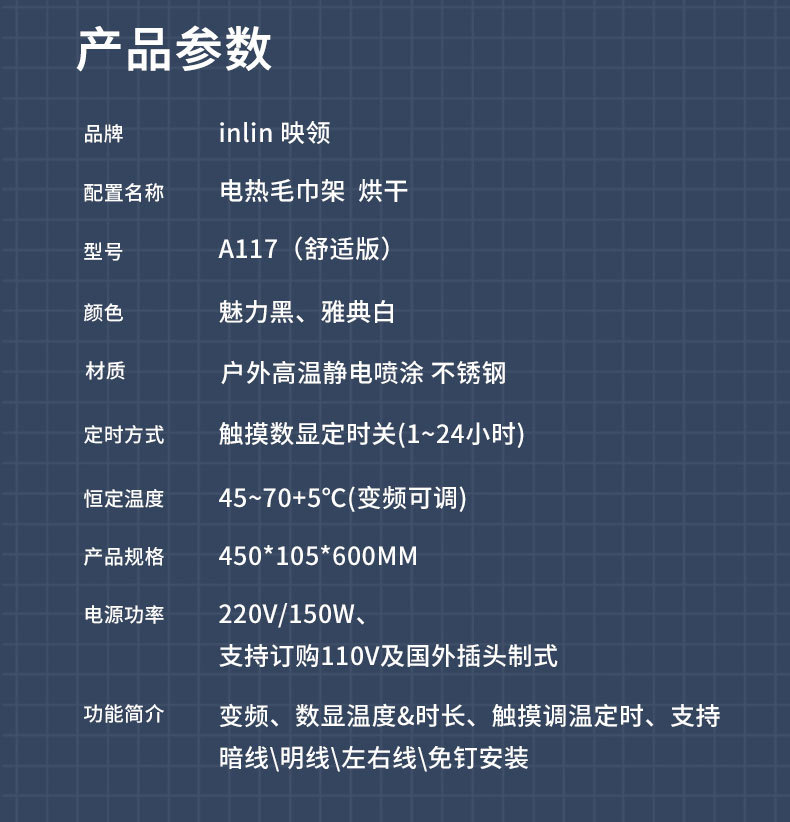 产品名称:电热毛巾架|不锈钢电热毛巾架|毛巾烘干架|衣服加热加暖