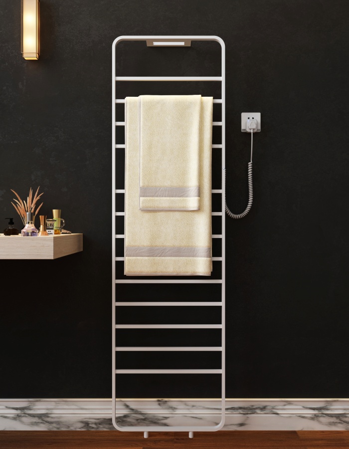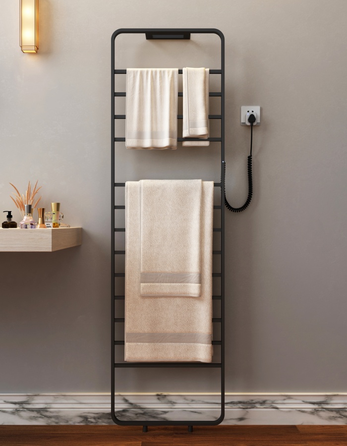 ●恒温55℃、●三功能记时插座(0.5H、1H、2H、4H、6H、8、10Hour)、●13杆可烘干加热一套衣服、浴巾浴袍、烘干加热